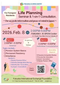 Fukuoka Prefectural International Center is hosting a Life Planning Seminar for Foreign Residents!